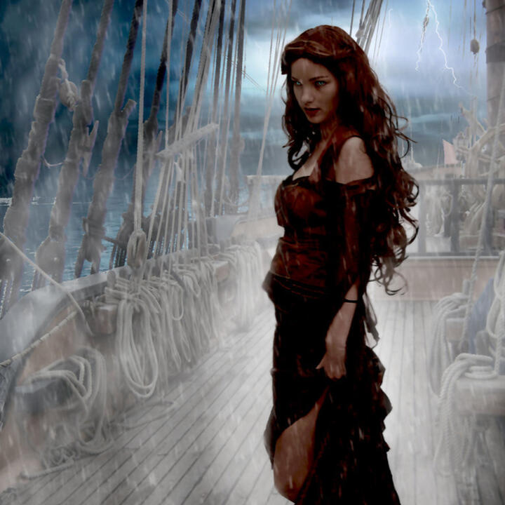 With fiery locks and a burning gaze, Rena Leone is a firebrand tempest of a woman. Ill-suited to the noble station to which she was borne, the lady has long abandoned the silks of elegant gowns for the earthen scent of oiled leather corsets. The seductive invitation of her curves is offset by the sharp sting of her tongue - and any who venture to test her boundaries are oft met with the swing of a well-aimed fist. Now the Captain of The Kiss of Kynareth, one of the trading vessels sailing under the Valentus Trading Company banner, the deference of her crew of crude sailors is testament to this brazen woman’s mettle.
